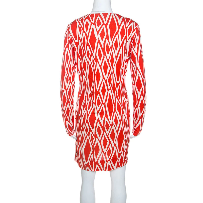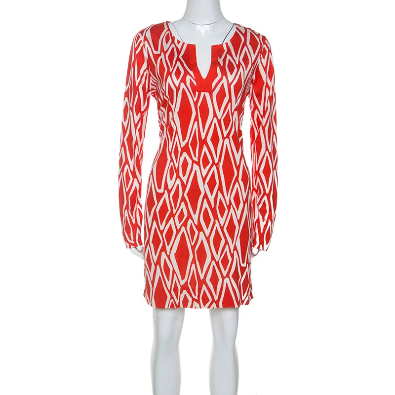 This 100% silk dress by Diane Von Furstenberg is a closet staple. It features a lovely print throughout and has a simple silhouette. It comes with long sleeves and a round neck with a slit. This tunic dress is great for casual outings.
