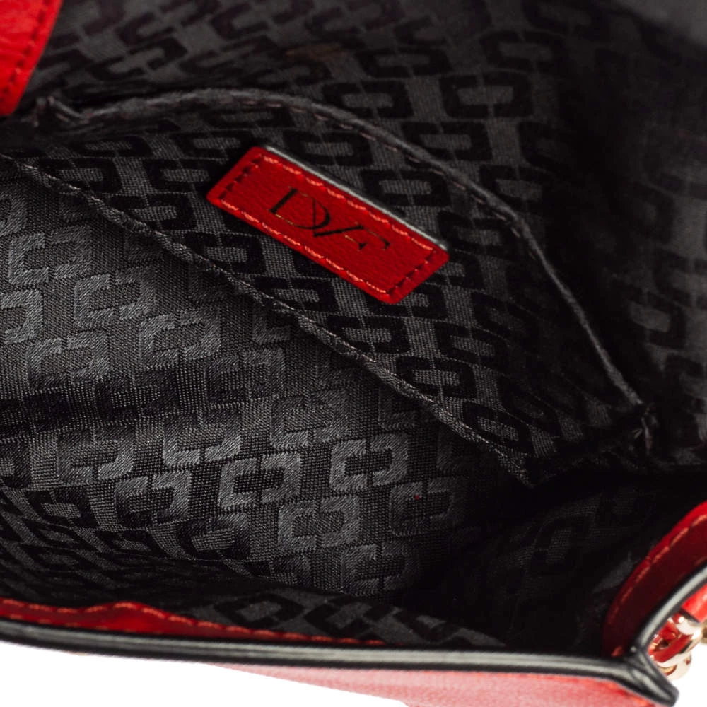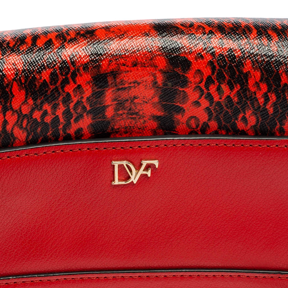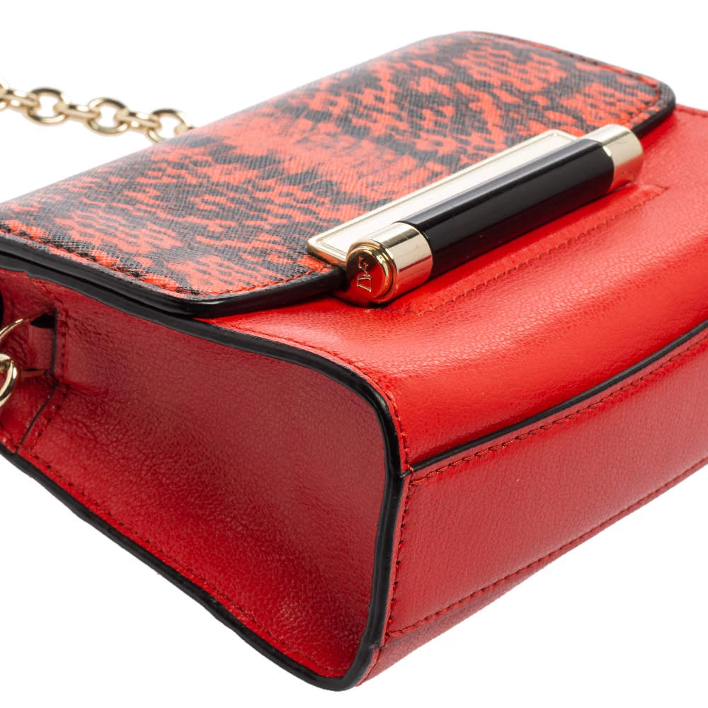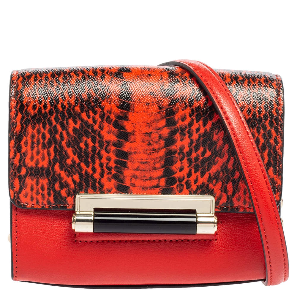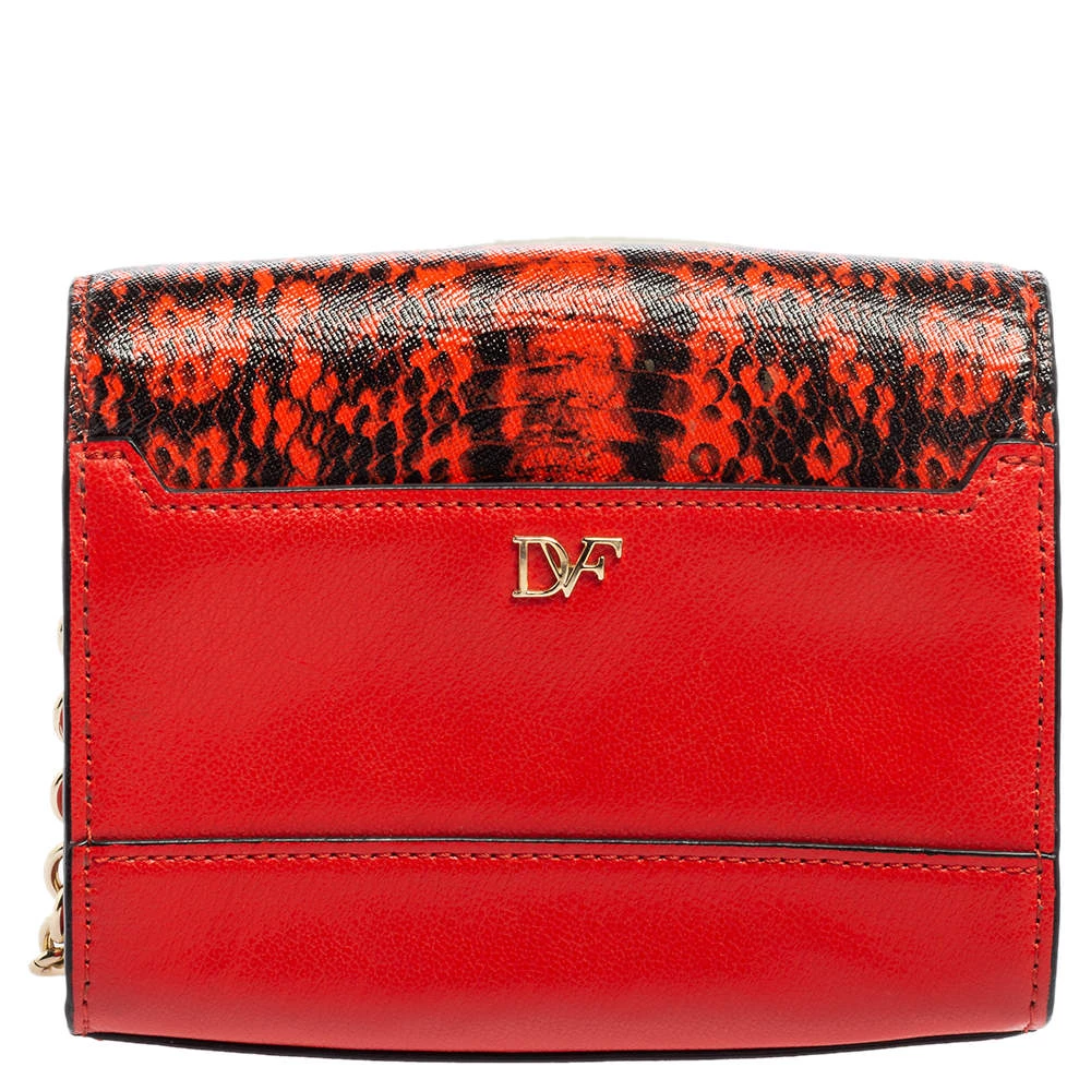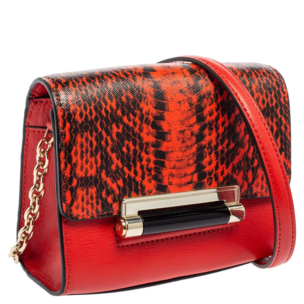 Skillfully crafted, this premium crossbody bag by Diane von Furstenberg will take you through your day with ease and style. It is crafted with red leather and python effect leather. The fabric interior is well-sized to carry your essentials and ensures they are safe while the shoulder chain allows effortless use.