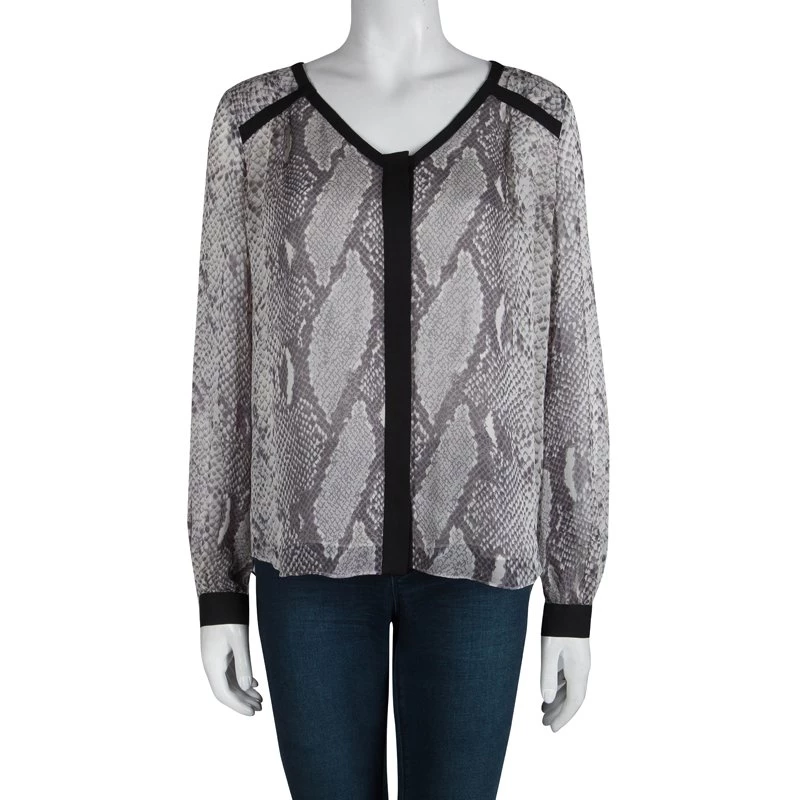 When it comes to animal prints, snakeskin is a print thatโs pretty safe to go with- itโs subtle and understated. This snakeskin print top by Diane Von Furstenberg is totally on point in the fashion meter, and that black piping really makes it stand out, flattering for women of all ages!