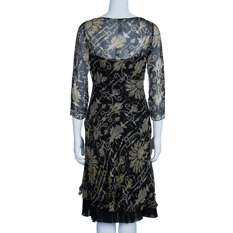 This breezy Diane Von Furstenberg Tamary Chiffon Dress will be the highlight of the next cocktail party you go to! Made from silk, the dress comes in a lovely print with a plain black pleated bust and chiffon fall outlining design. The dress is coupled with unlined sleeves and back and pleated black hem.