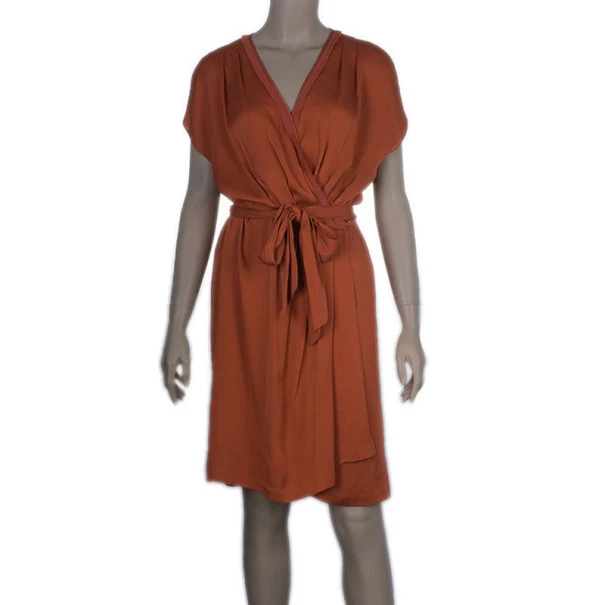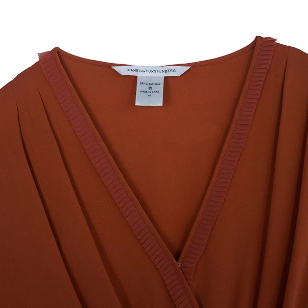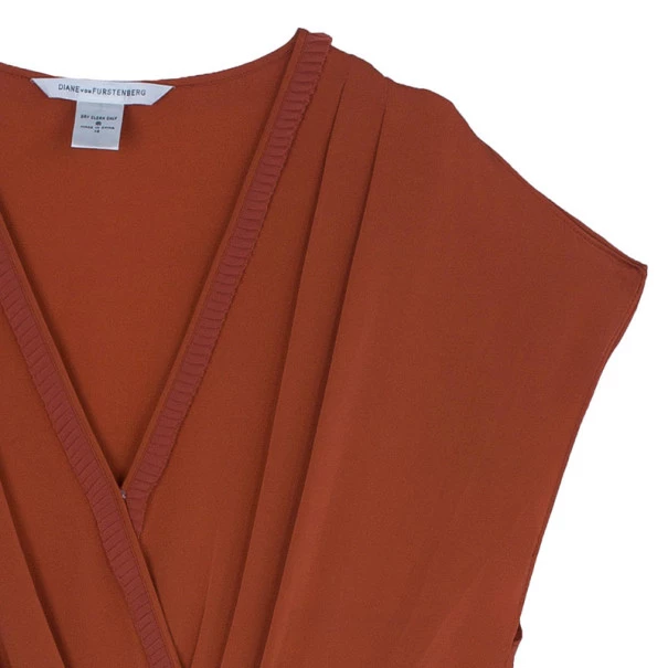 This Diane Von Furstenberg dress is perfect for elegant brunches. Crafted from orange colored silk, this slip-on dress features a v-neckline, cross-over pleated front and a pleated skirt with an elasticated waist and a self-tie waist belt.Original Retail Price: US $435
