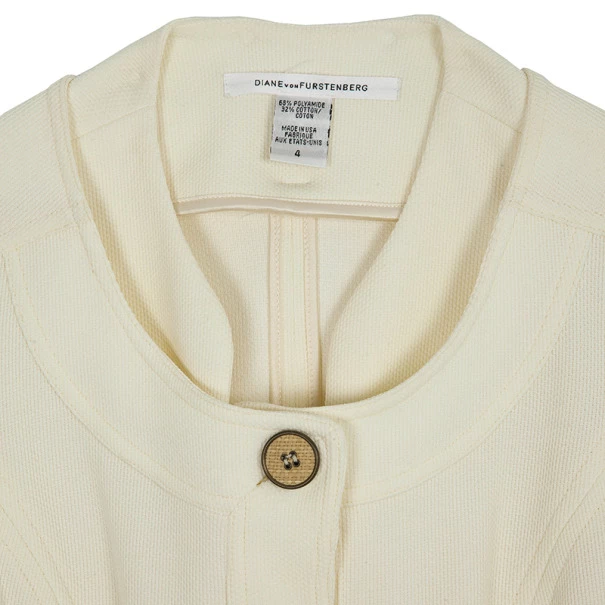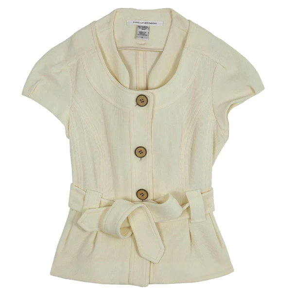 This fab jacket from DVF is made from a cotton blend. It features short sleeves, a buttoned down front and a waist belt.