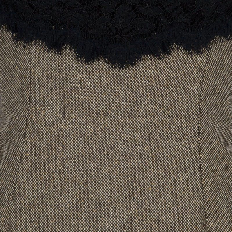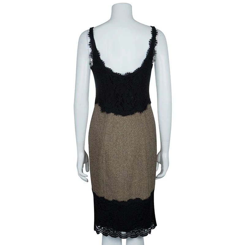 This classic black and brown tweed lace elegant dress from Diane von Furstenberg will stun people wherever you go!! It is made in a perfect blend of wool, polyamide , elastane and silk, hugging your curves at the right position. It features a deep round neck with beautiful furry lace details and comes in a sleeveless design. This piece is surely hard to miss!