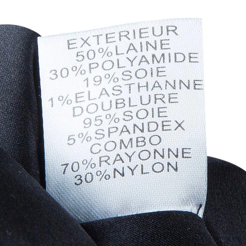 - Fabric: Fabric 1 (50% Wool, 30% Polyamide, 19% Silk, 1% Elastane), Fabric 2 (70% Rayon, 30% Nylon), Lining (95% Silk, 5% Spandex),