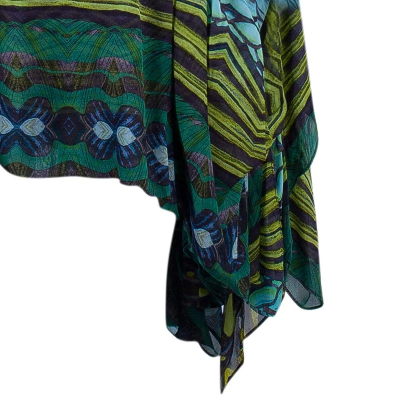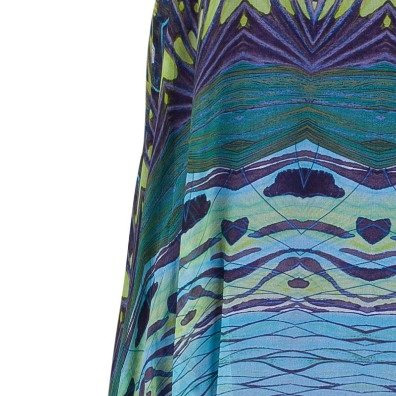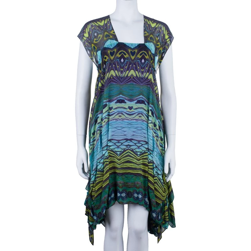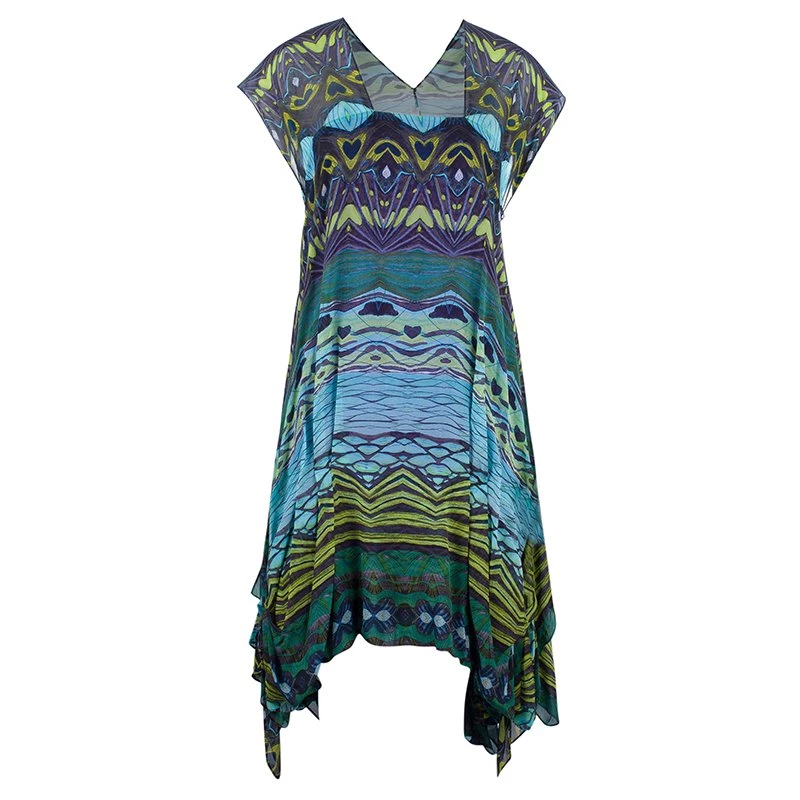 This tropical Diane Von Furstenberg dress is fun to flaunt. Showcasing a tribal print, this sleeveless dress features a flattering loose cut, a square neck, dolman cap sleeves, pleat detailing at the sides and an asymmetrical hem. The multicolor dress comes with a v-neckline and a concealed zip fastening at the back. This dress is perfect for a casual summer day!