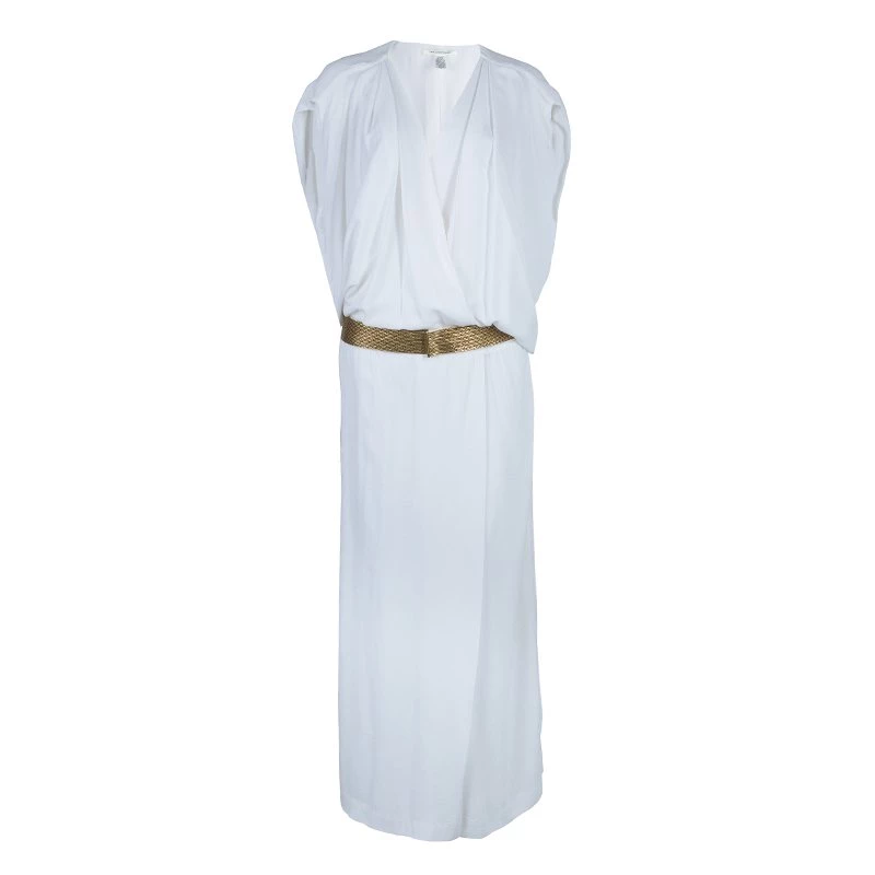 Stalk this astounding and elegant Crepe Draped Front Juliette Belted Dress by Diane Von Furstenberg. Crafted from rayon, it features V shaped neckline and sleeveless design to count on. This dress is cinched with a gold belted waist.