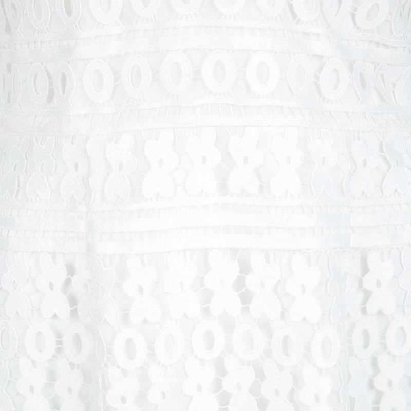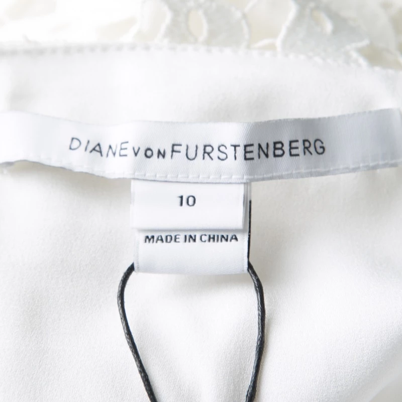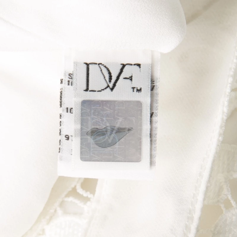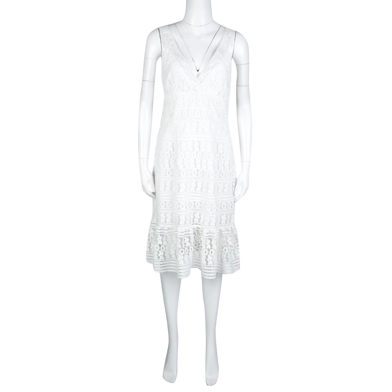 Characterized by a flouncy detail, this white Tiana dress from the house of Diane Von Furstenberg keeps you at the top of your style game. Featuring a layered lace look, the dress has thin shoulder straps, a v-neckline, and a sheer hem. Wear this outfit for a graceful look.