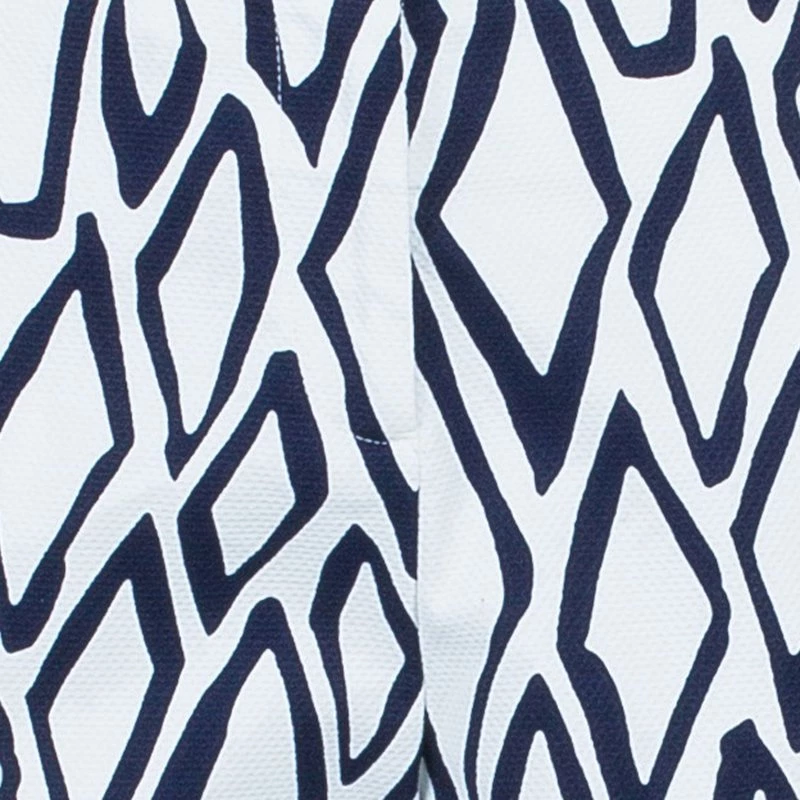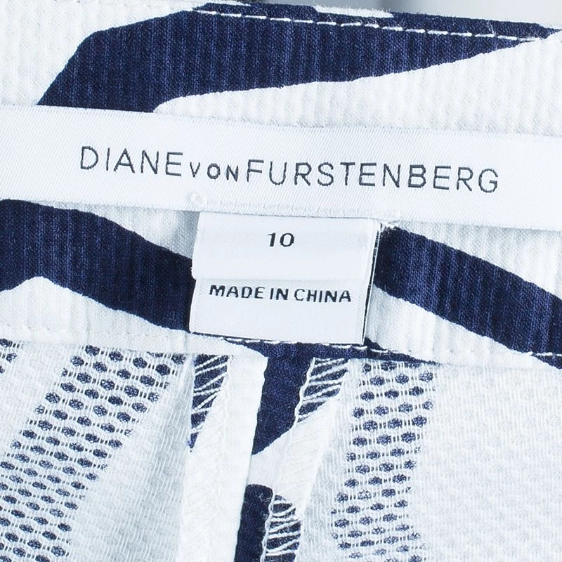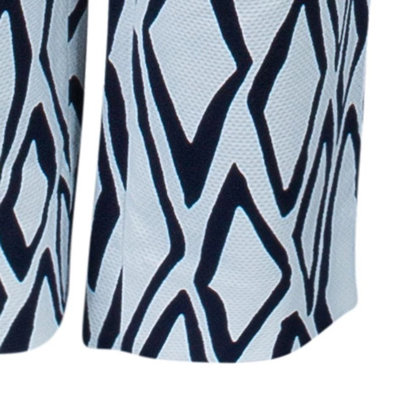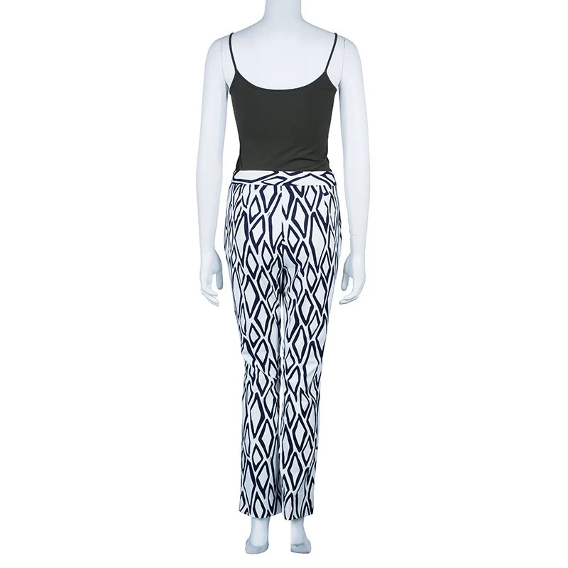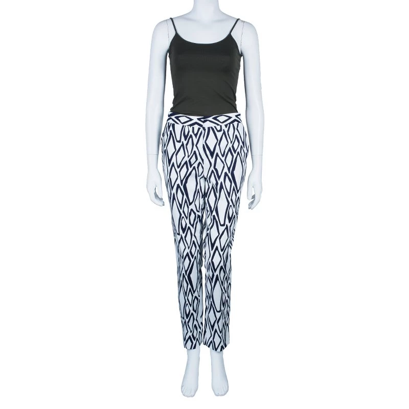 These printed trousers from the house of Diane von Furstenberg will take style to the next level. Crafted from cotton and spandex, they feature a geometric navy print on a white base and a flat front. Wear these with a plain top and matching pumps for an ultra chic look.