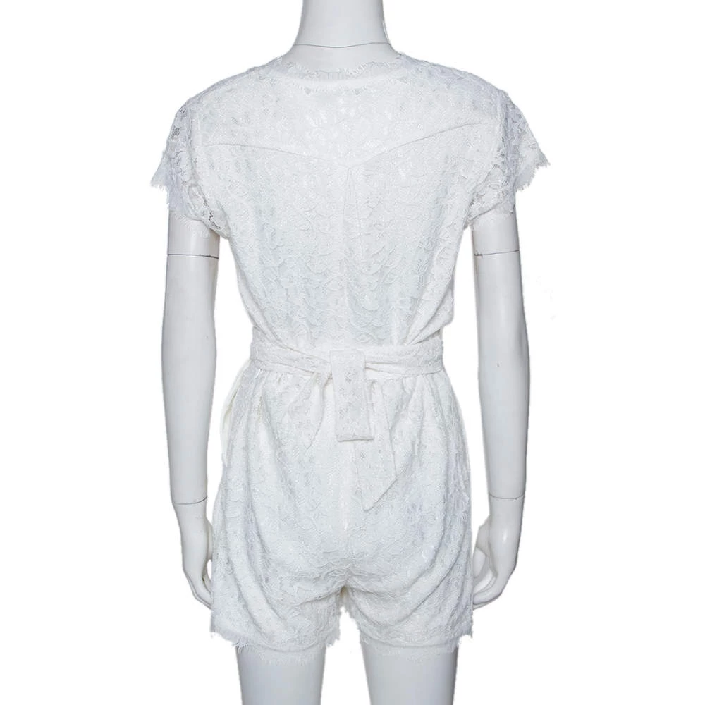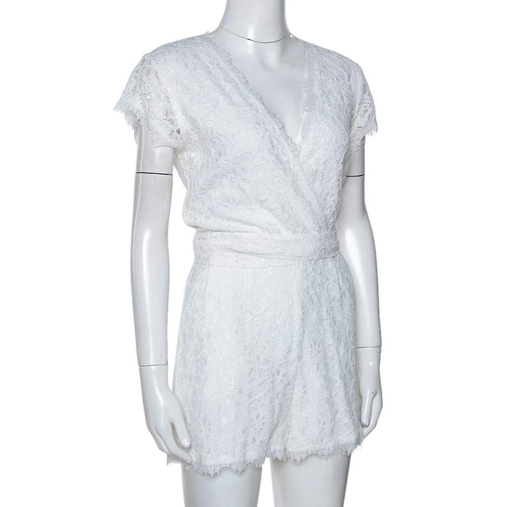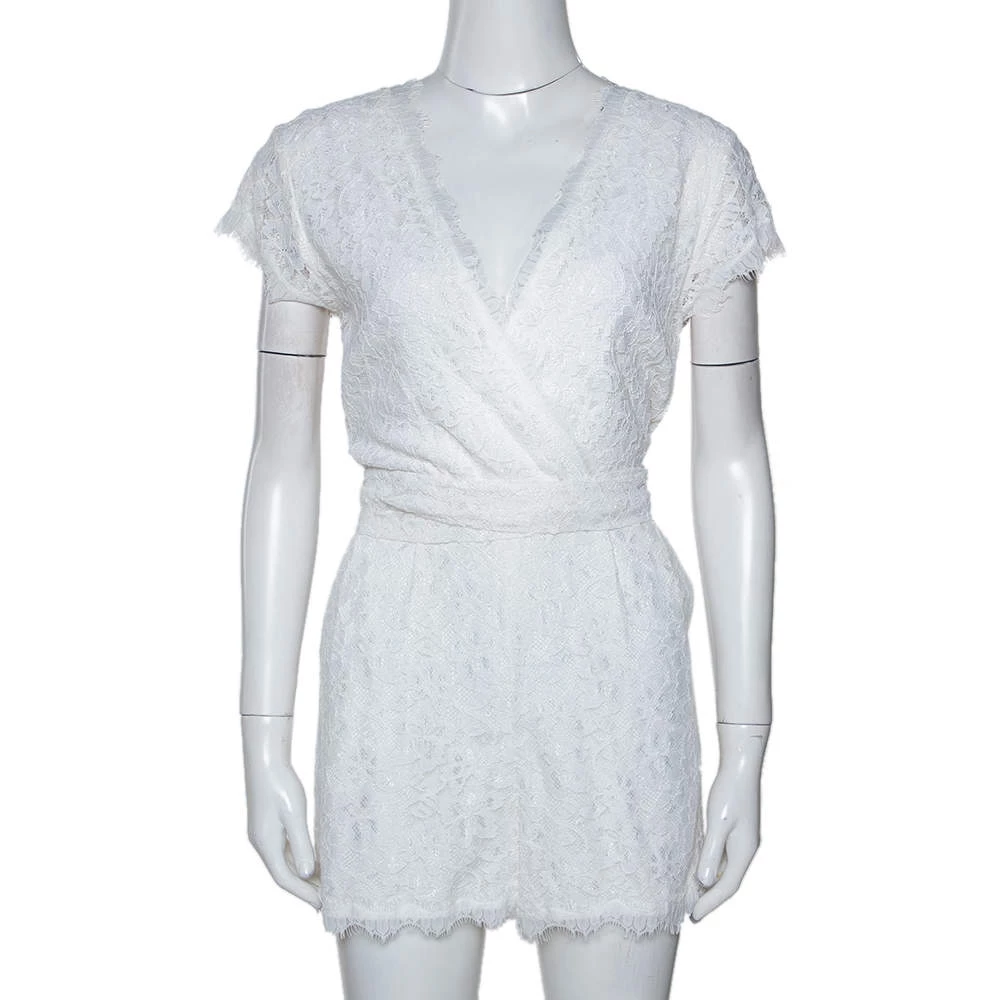 Update your wardrobe by adding this chic romper from Diane von Furstenberg. Crafted with quality materials, it features a plunging neckline along with a wrap design to follow. This lace romper that has short sleeves and pockets will look great with both flats and high heels.