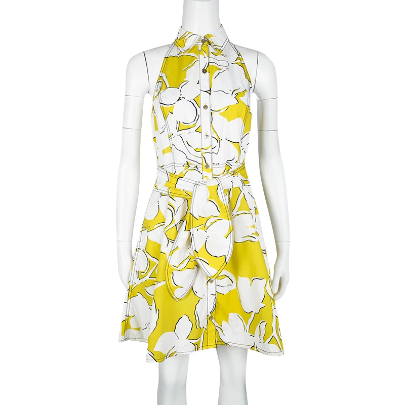 This dress from Diane Von Furstenberg is here to make you look fashionably divine. Cut from cotton, the dress has a collar halter neck with front buttons, a waist tie and floral prints splayed all over. You can wear it with a pair of espadrille wedge sandals.