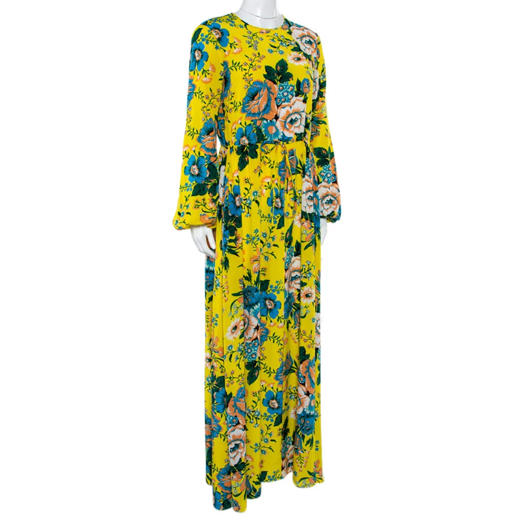 A Diane von Furstenberg dress like this is a perfect piece that will lend an edge to your collection. This printed yellow dress is the right blend of elegance and comfort as it easily takes you through the day. It comes with a floor-grazing hem, a waist tie, and long sleeves.
