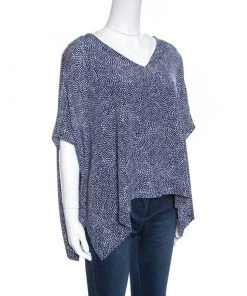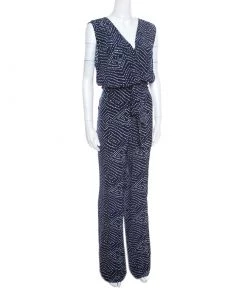Diane Von Furstenberg Navy Blue And White Dotted Silk Belted Eva Jumpsuit M For Women