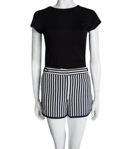 Diane Von Furstenberg Navy Blue And White January Striped Silk Tiffany Print Shorts M For Women