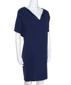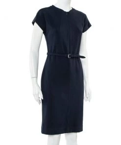 Diane Von Furstenberg Navy Blue Crepe Boat Neck Belted Sandra Jumpsuit M For Women