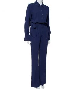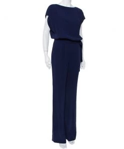 Diane Von Furstenberg Navy Blue Crepe Belted Lori Jumpsuit M For Women