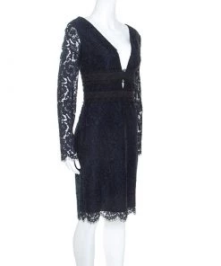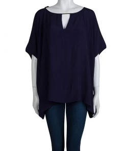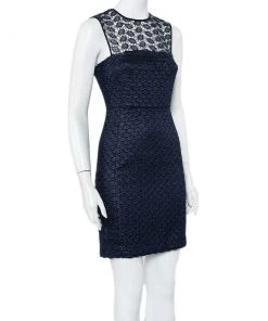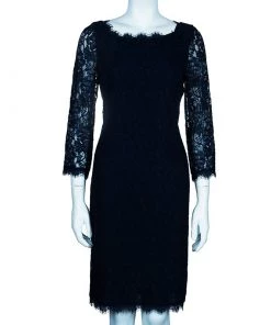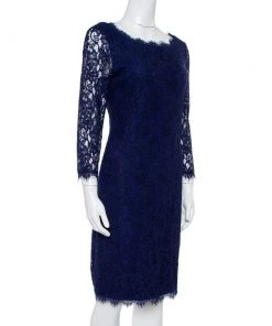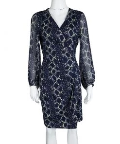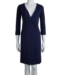 Diane Von Furstenberg Navy Blue Lurex Knit Button Font Hurleigh Cardigan S For Women