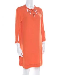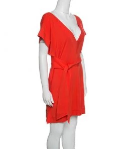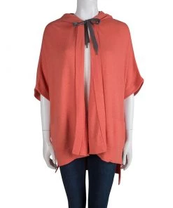 Diane Von Furstenberg Orange Hooded High Low Kaiyo Sweater M/L For Women