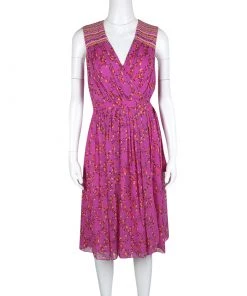 Diane Von Furstenberg Shalamar Pink Floral Printed Silk Sleeveless Bali Wrap Dress M For Women