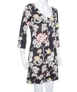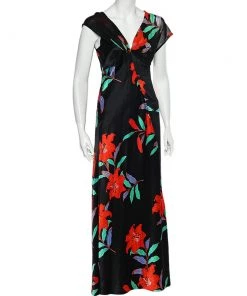 Diane Von Furstenberg Black Floral Printed Silk Pintuck Detail Jumpsuit M For Women