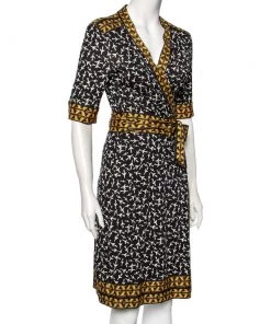 Diane Von Furstenberg Black Printed Silk Lace Trim Detail Tiered Taleen Mini Dress M For Women