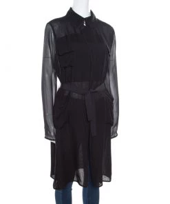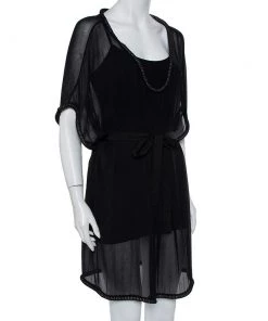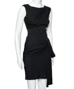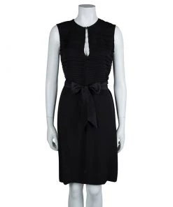 Diane Von Furstenberg Black Silk Geometric Pleat Detail Sleeveless Belted Kimian Dress M For Women