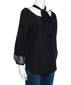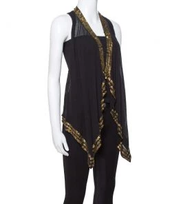 Diane Von Furstenberg Black Silk Chiffon Gold Sequin Embellished Ellowyn Sleeveless Vest M For Women