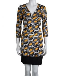 Diane Von Furstenberg Abstract Floral Printed Silk Jersey New Julian Two Wrap Dress M For Women