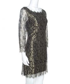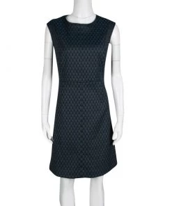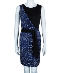 Diane Von Furstenberg Black And Blue Geometric Pattern Jacquard Sleeveless Madyson Dress L For Women