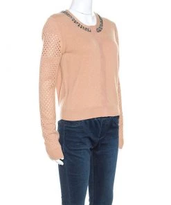 Diane Von Furstenberg Camel Wool Blend Perforated Sleeve Detail Donna Cardigan M For Women