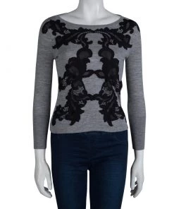 Diane Von Furstenberg Grey Floral Lace Applique Detail Shara Sweater XS For Women